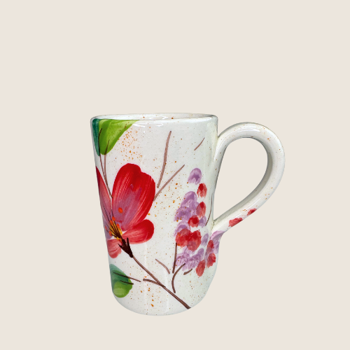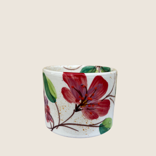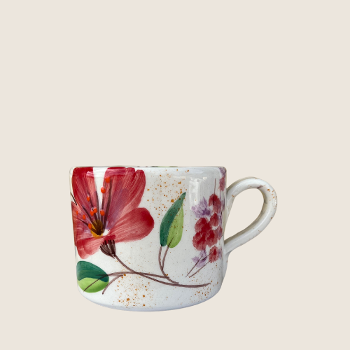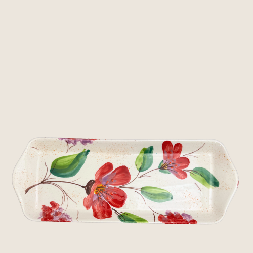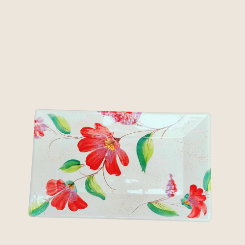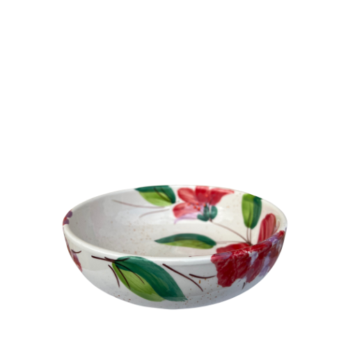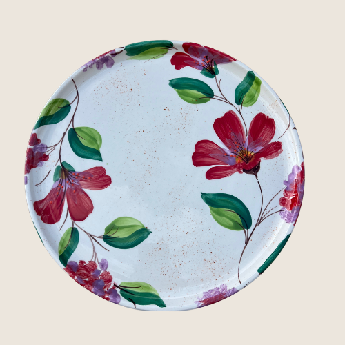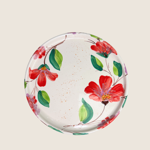 Round dish w/edge, Karisma, Rojo, Crema, hand painted Spanish ceramics