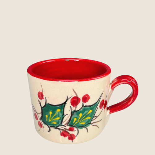 Unusually delicious and beautiful mug for all the coffee, cocoa and tea varieties that there may be. The spaciousness of the mug means that you have all kinds of options to get the best drink. The favorite mug for most people - and we can understand that! Handmade and hand painted ceramics from Spain. The ceramic is fired at a very high temperature several times, which makes it strong and extremely useful - both for everyday use and parties. Dishwasher, freezer and microwave safe. Crackling in the glaze occurs naturally with normal use and large temperature differences, without necessarily resulting in leakage.