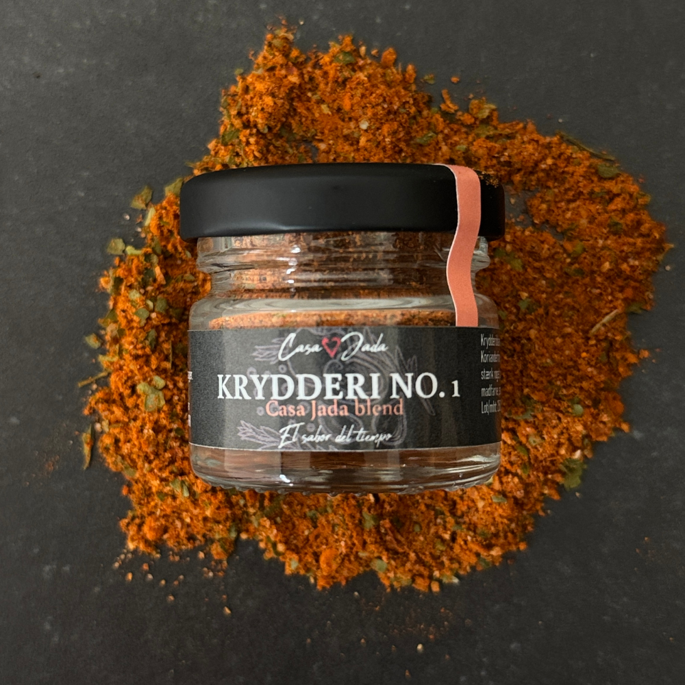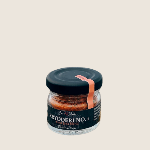 Casa Jada Krydderiblanding No. 1 er vores farverige signaturblanding, skabt til at løfte hverdagsretter med både smag og udseende. Den kombinerer varme, sødme og friskhed fra korianderfrø, ñora ñora, sort citron, stærk røget paprika, salt, persille, madfarve og spidskommen – og giver maden en smuk, gylden glød.